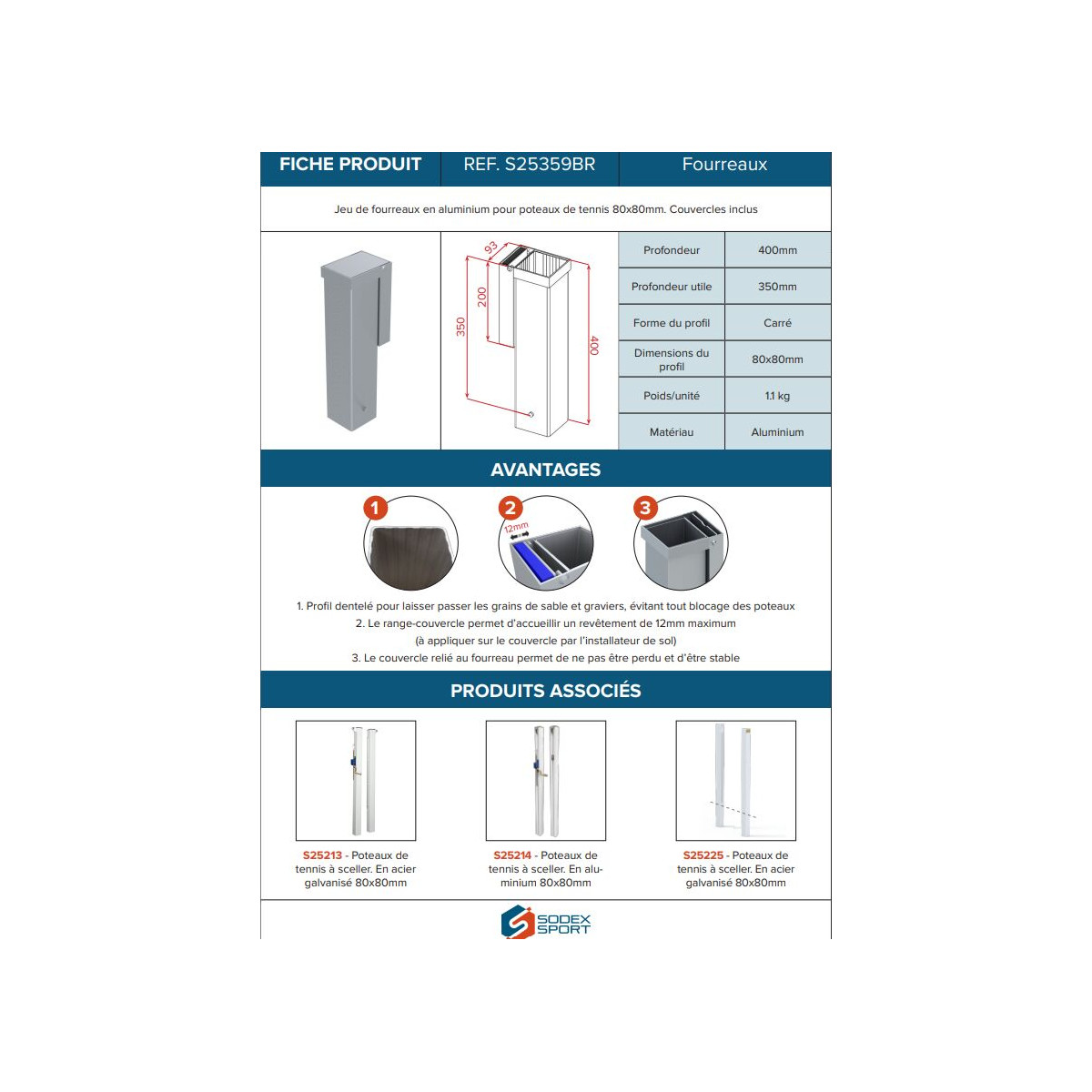 Fourreaux pour poteaux carrés de 80mm x 80mm.