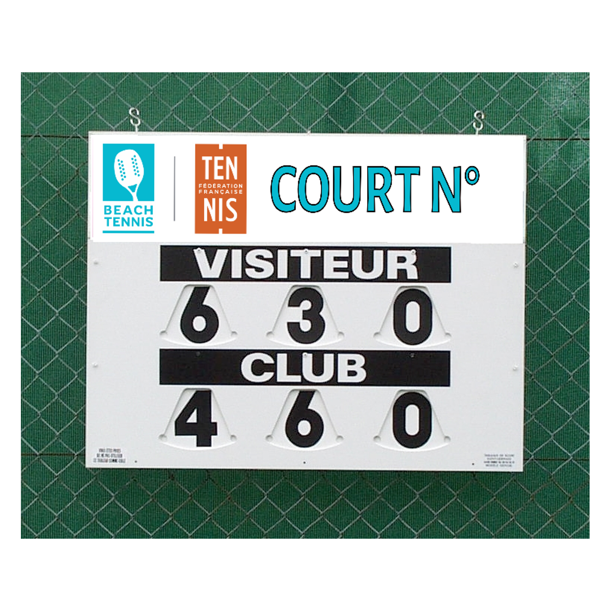 - Livré avec : 2 Plaquettes (pour affichage manuel des Noms et Classements) + Adhésif "BEACH TENNIS + FFT + N° de court" + 4 serflexs