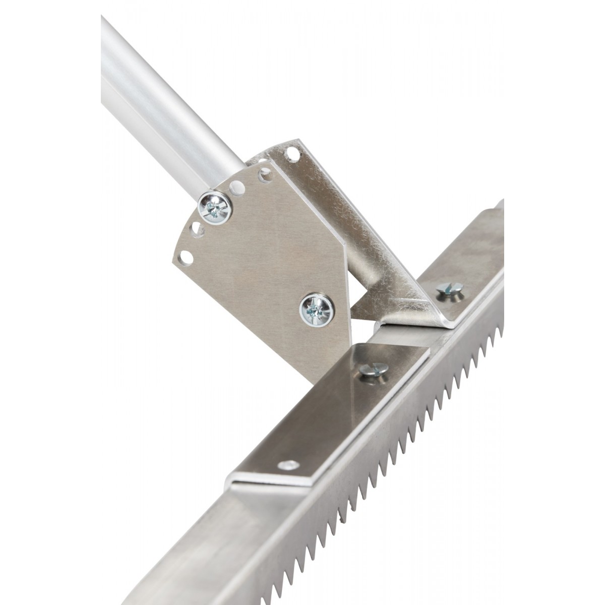Raclette en acier avec un manche en aluminium qui permet d’étaler tous les autolissants type résine sur plusieurs types de surfaces (tennis en résine, sol parking, etc)