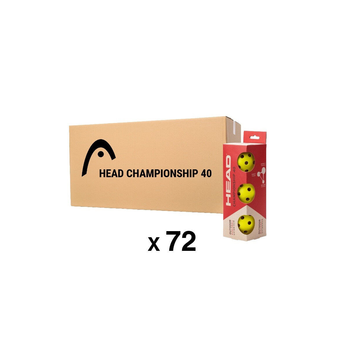 Les  balles Head Championship 40 Outdoor sont  conçues pour offrir une performance optimale lors des parties de pickleball en extérieur. Ces balles sont fabriquées en plastique durable avec une construction monobloc, assurant une longévité accrue même lors d'utilisations intensives. Leur couleur jaune vif garantit une excellente visibilité sur le terrain, quelles que soient les conditions de luminosité. Homologuées par l'USAPA, elles conviennent aussi bien aux joueurs débutants qu'aux compétiteurs. Spécifications techniques Diamètre : 2,904 pouces (environ 73,8 mm) Poids : Environ 26 g Nombre de trous : 40 (petits trous pour une meilleure résistance au vent) Matériau : Plastique injecté monobloc Homologation : Conforme aux spécifications officielles du pickleball (USAPA) Conditionnement : Pack de 6 balles Points forts Rebond dynamique : Offre une trajectoire stable et un rebond constant. Visibilité accrue : Couleur jaune vif pour une meilleure détection en extérieur. Durabilité : Conception monobloc résistante aux chocs et à l'usure. Polyvalence : Adaptée à tous les niveaux de jeu et aux compétitions officielles.