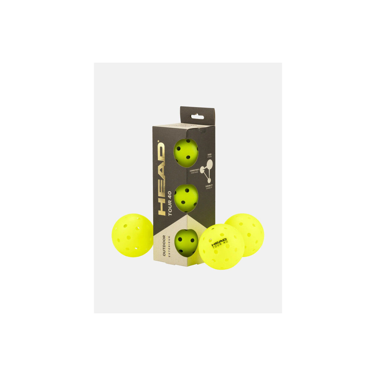 La HEAD Tour 40 Outdoor est une balle de pickleball hautement performante, conçue pour offrir une trajectoire stable et une durabilité maximale en extérieur. Sa fabrication monobloc par injection moulée assure une structure rigide, résistante à la déformation, même lors de frappes intenses sur terrains durs.