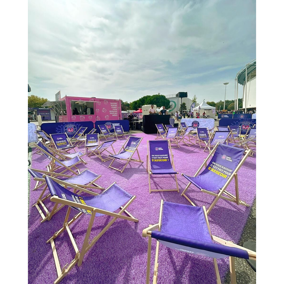 Lot de 4 chiliennes / transats en bois avec impression personnalisée