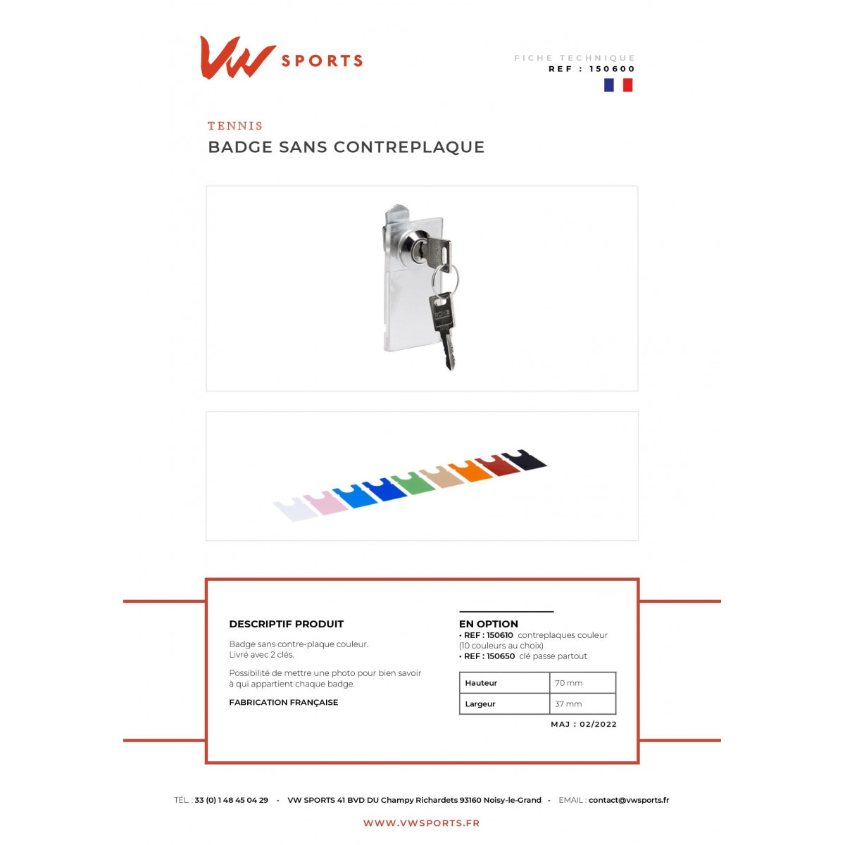 Le badge sans contre plaque est réservé pour l’adhérent.