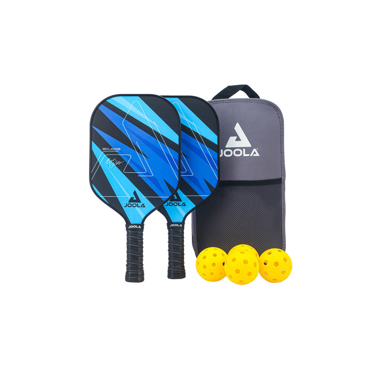 Ce pack comprend un filet portable JOOLA Elemental avec structure stable et système de montage rapide, quatres raquettes Ben Johns Blue Lightning offrant un excellent compromis entre contrôle et puissance, quatres balles indoor et quatres balles outdoor ainsi que deux sacs de transport pratique.