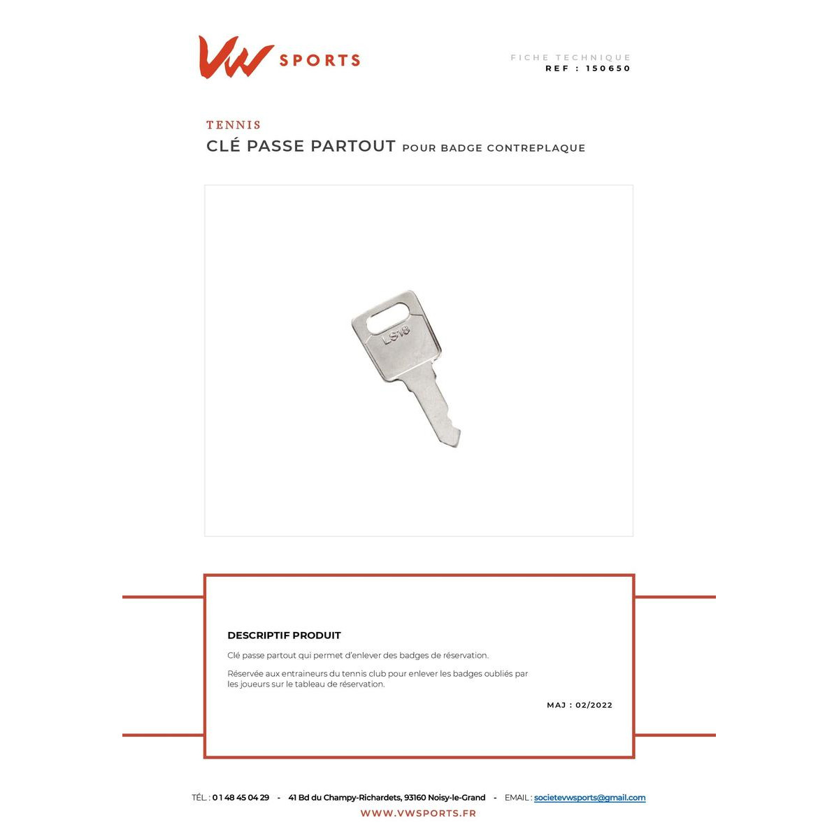 Clé passe-partout pour badges sans contreplaque