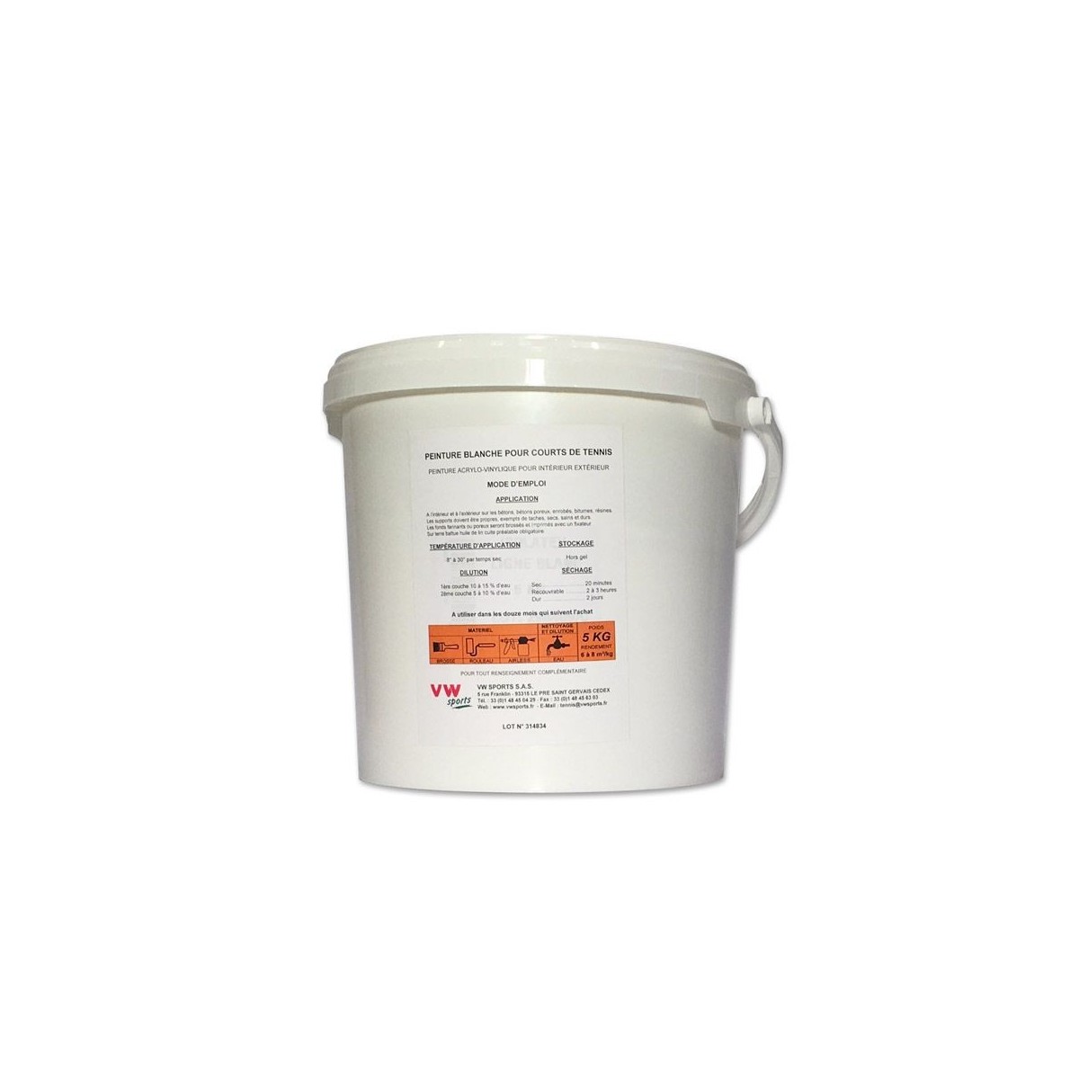 Pot de 5L de peinture blanche pour les lignes de vos courts de tennis. 1 pot suffit pour refaire 1 court.