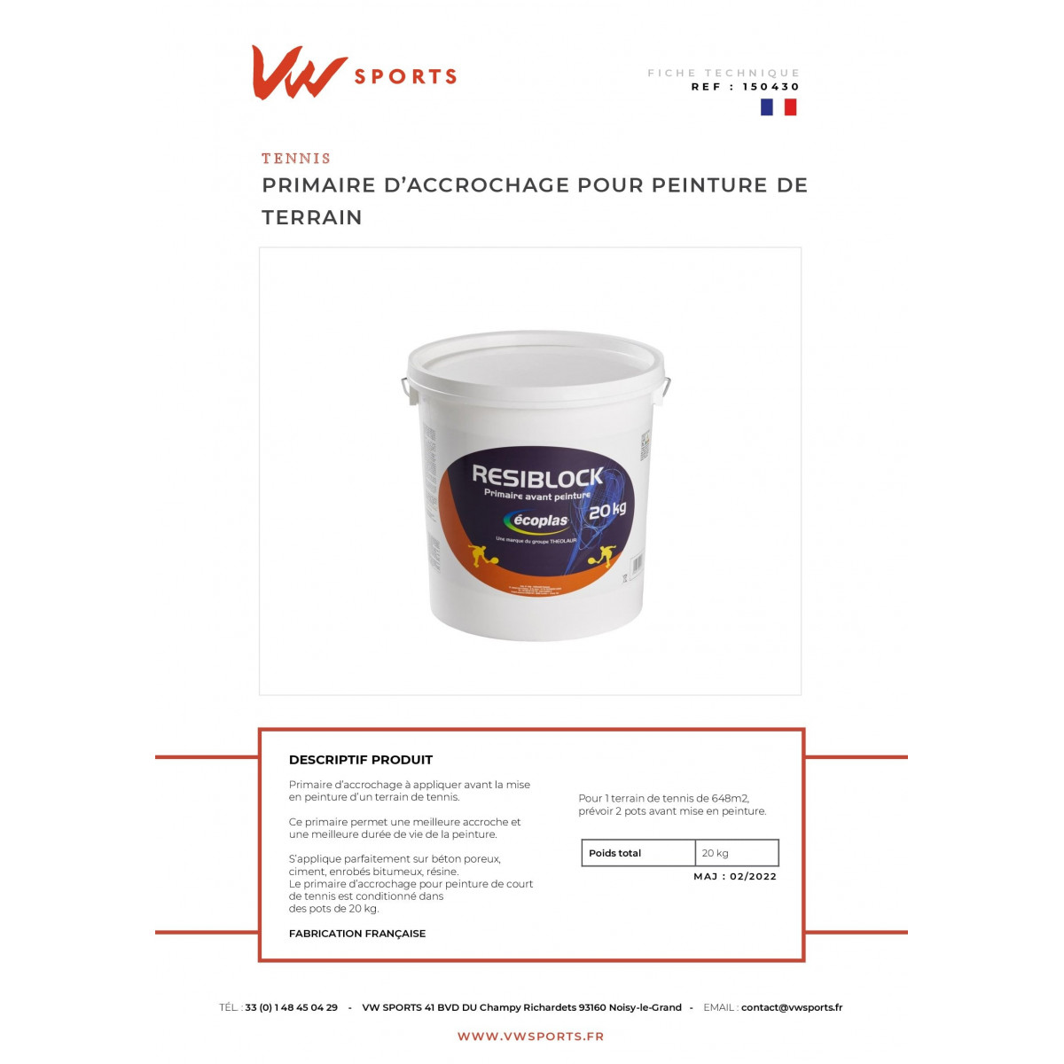Pour 1 terrain de tennis de 648 m2, prévoir 2 pots avant la mise en peinture