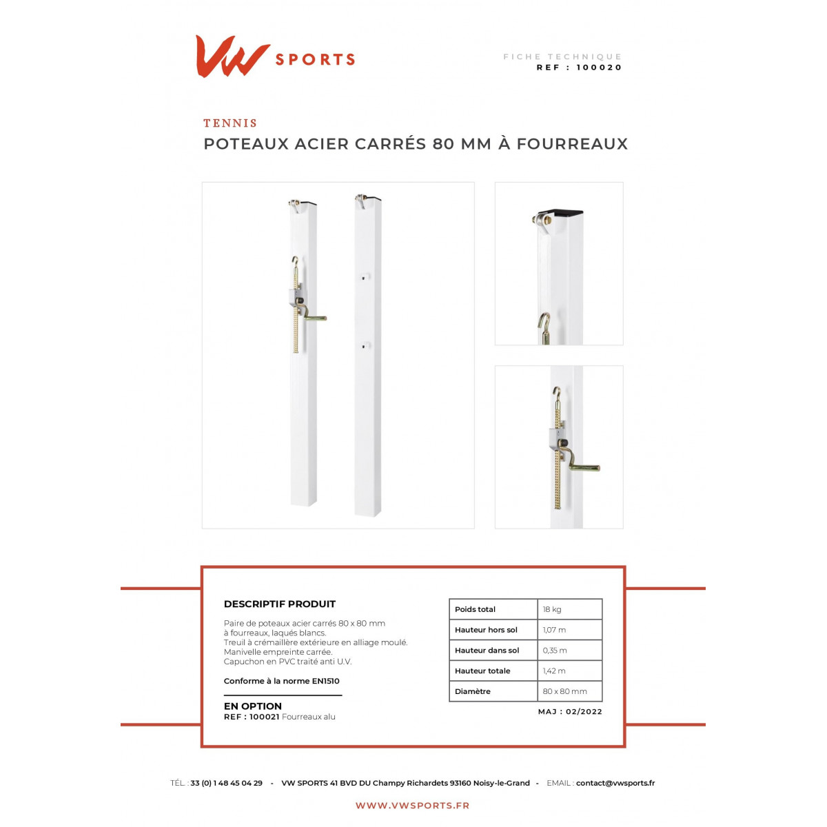 Poteaux de Tennis acier carrés dia.80mm - treuil extérieur (paire)