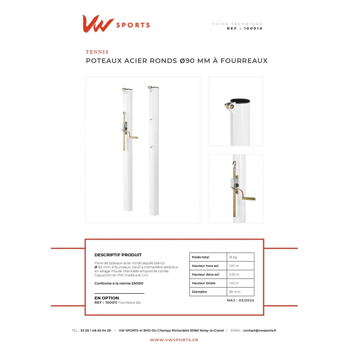 Option : Fourreaux alu pour poteaux rond dia.90mm - H 40cm (paire) - 100011 (fft.fr)