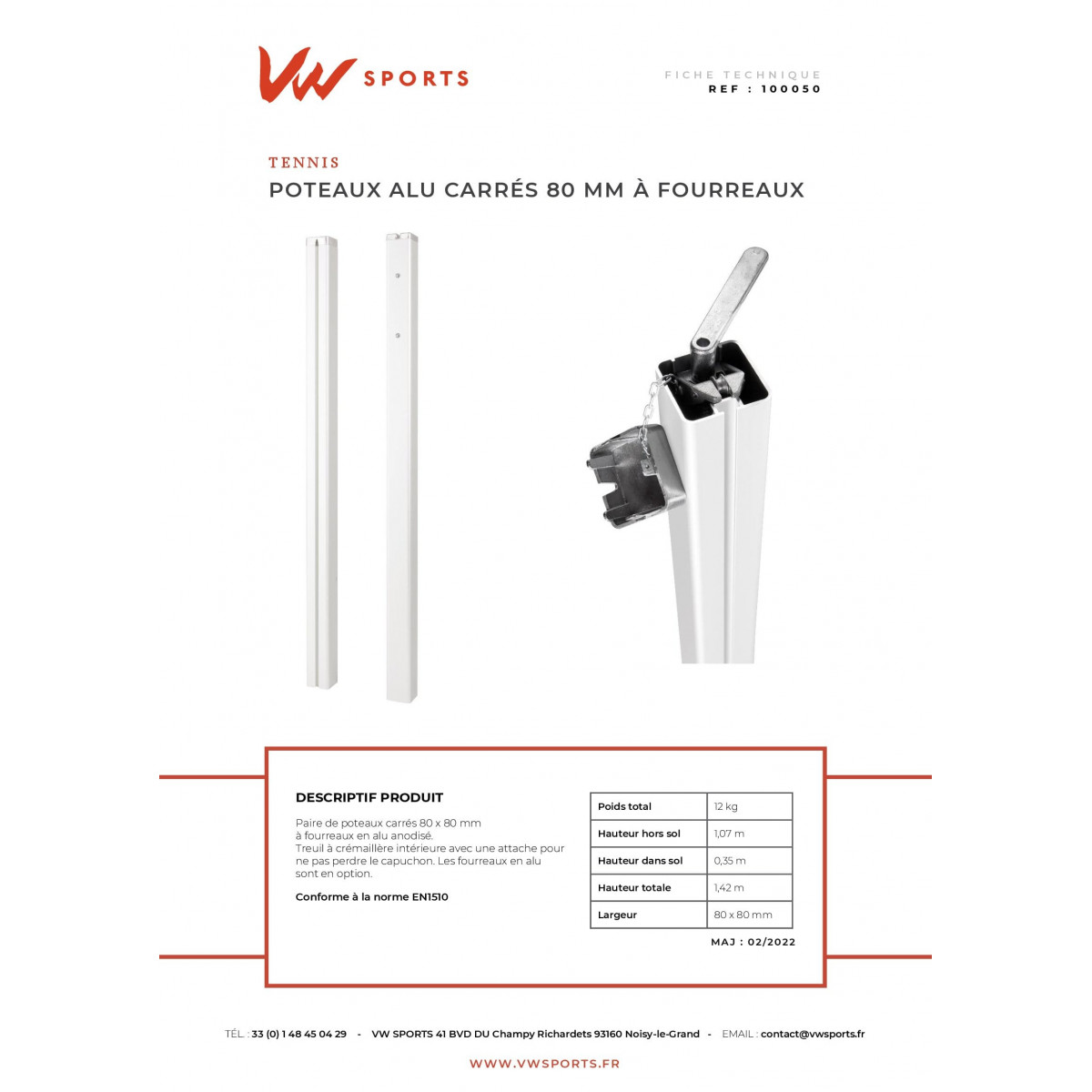 Poteaux de tennis alu blanc carré à fourreaux 80mm treuil intérieur